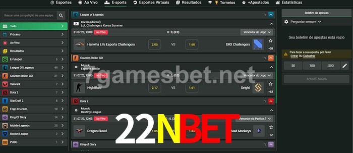 O 22Nbet oferece uma grande seleção de opções de apostas em e-sports com probabilidades competitivas